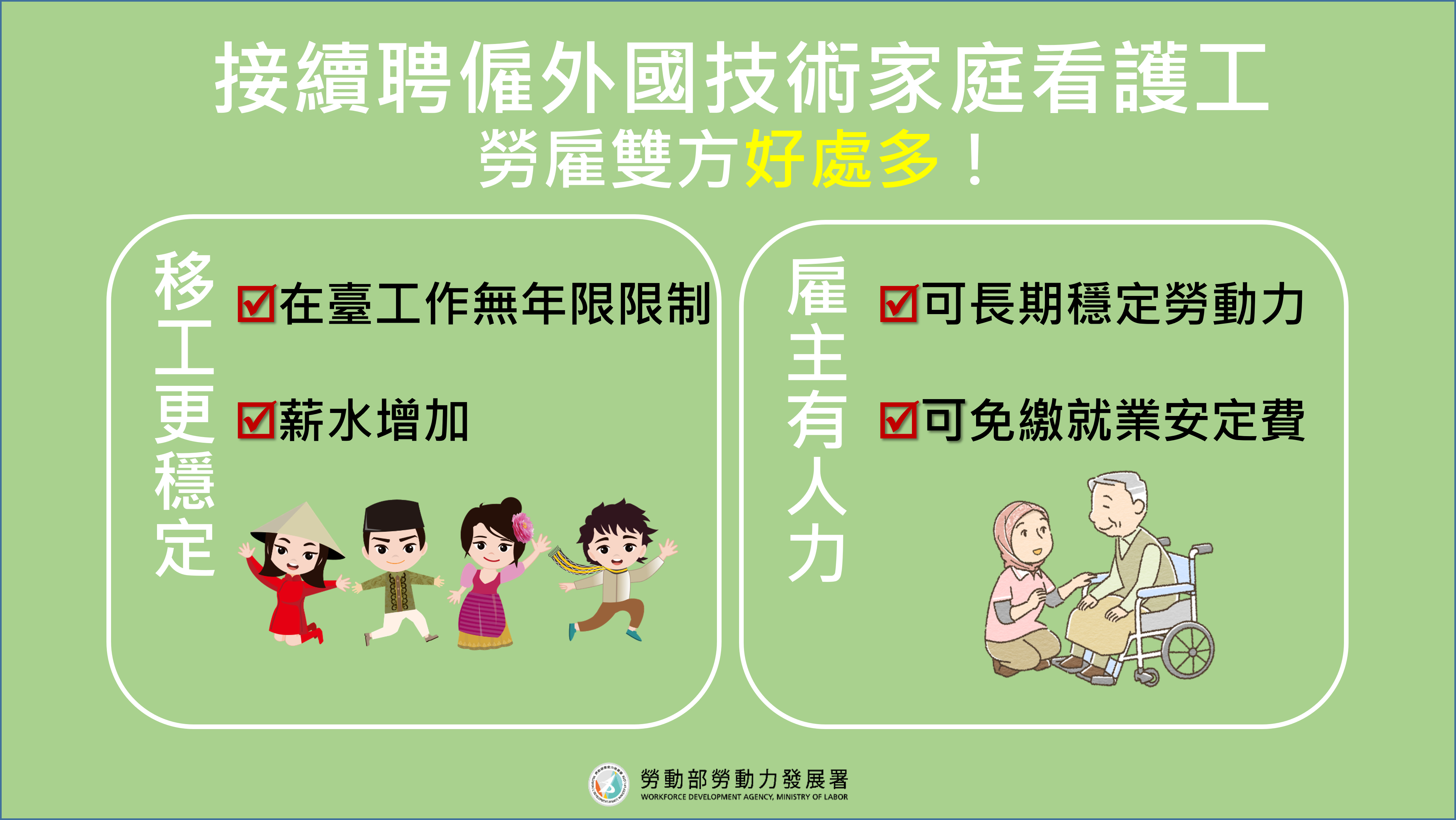 接續聘僱外國技術家庭看護工勞雇雙方好處多!