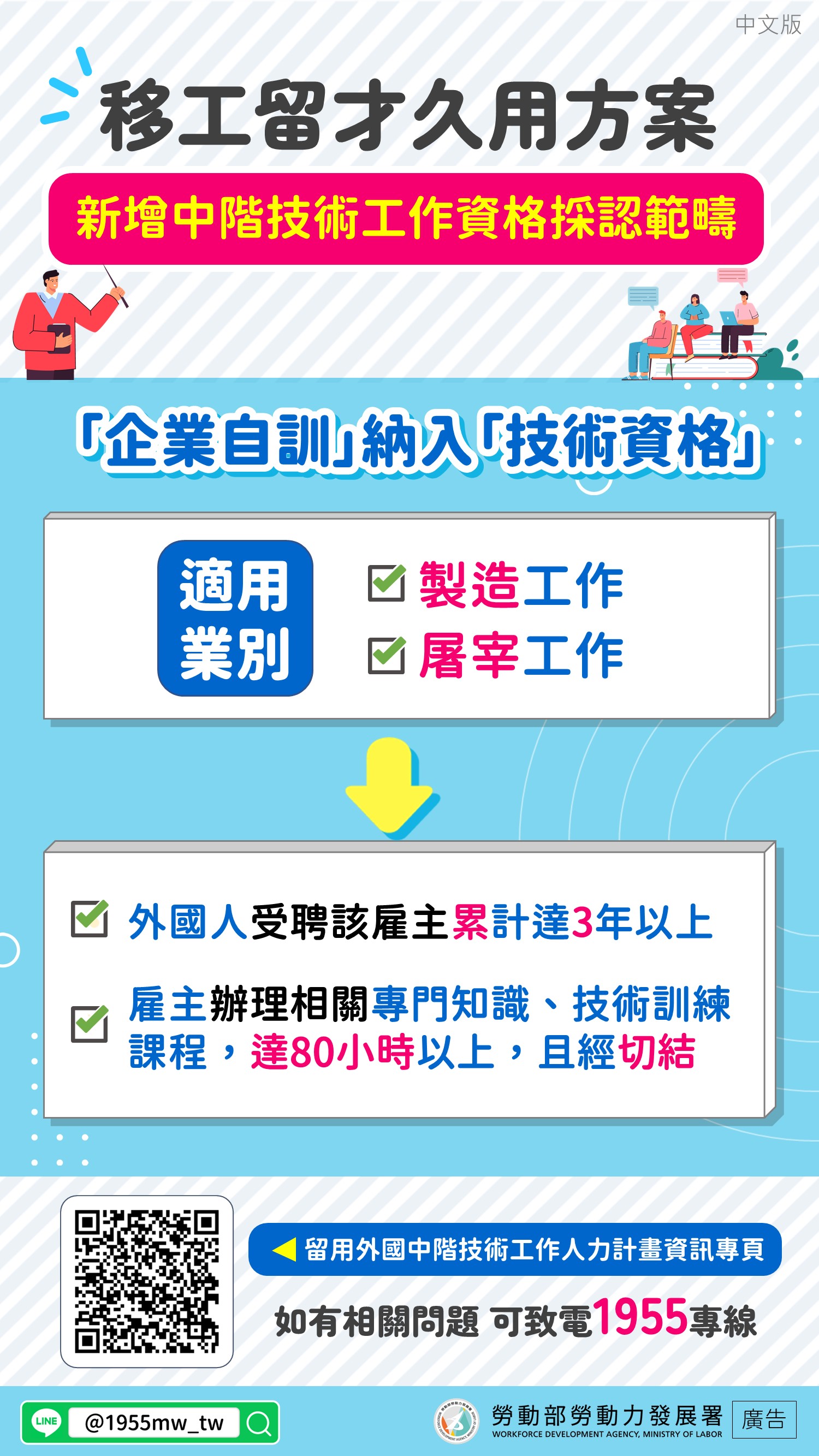 移工留才久用方案-新增中階技術工作資格採認範疇