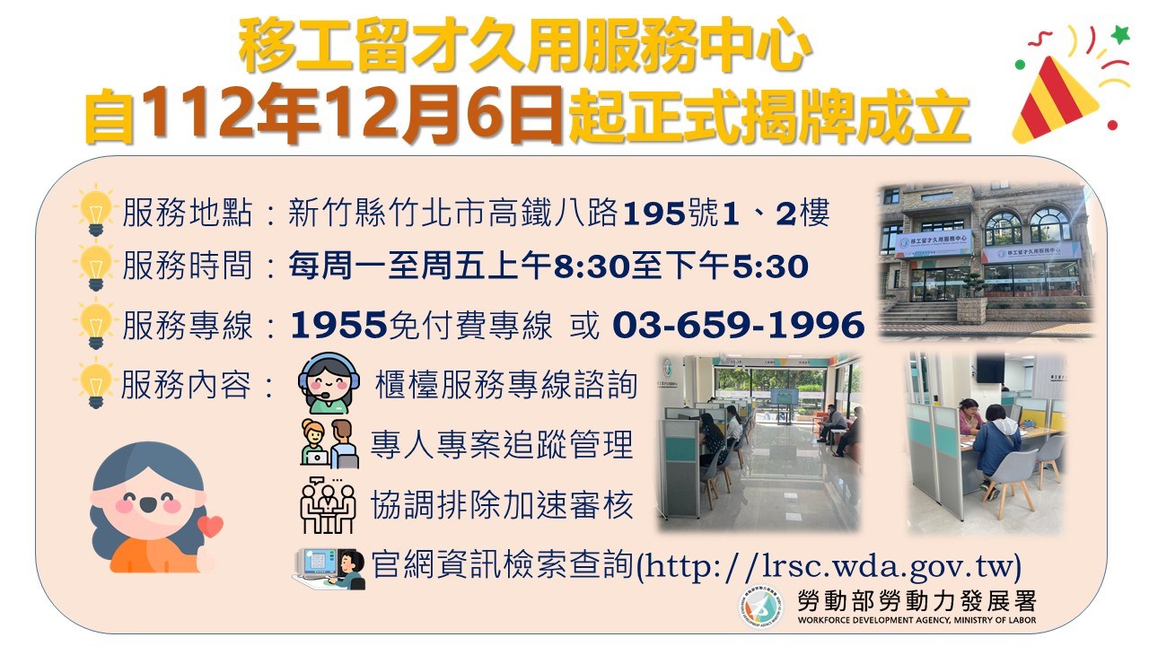 勞動部成立「移工留才久用服務中心」 協助雇主留用優秀資深移工