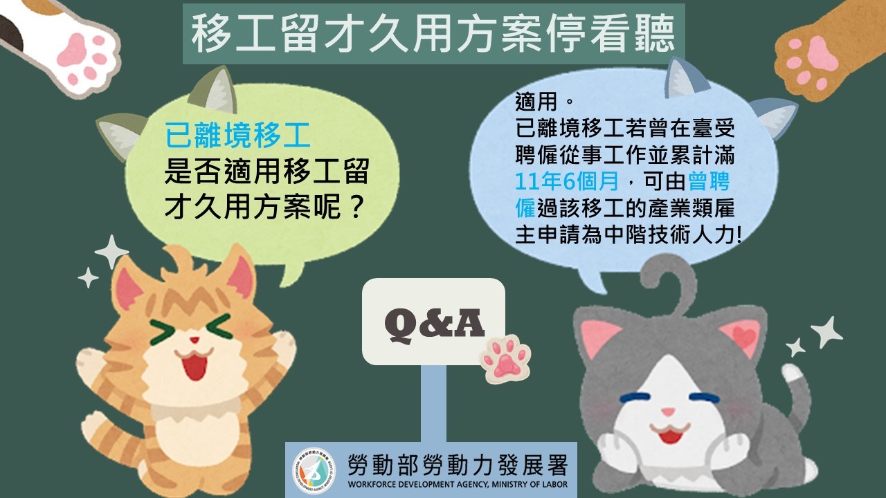 勞動部進一步說明,為積極協助產業類雇主留用優秀資深移工,勞動部已採行許多簡化措施,調整縮短雇主辦理中階技術人力國內求才招募的期間,以利雇主加速取得聘僱許可。目前已經核准逾千家產業類雇主聘僱中階技術人力,勞動部呼籲符合申請條件的產業類雇主積極提出申請,為企業的長期發展提供穩固優質的勞動力,創造雇主與移工雙贏的局面,進而提升我國整體產業及經濟發展的競爭力。