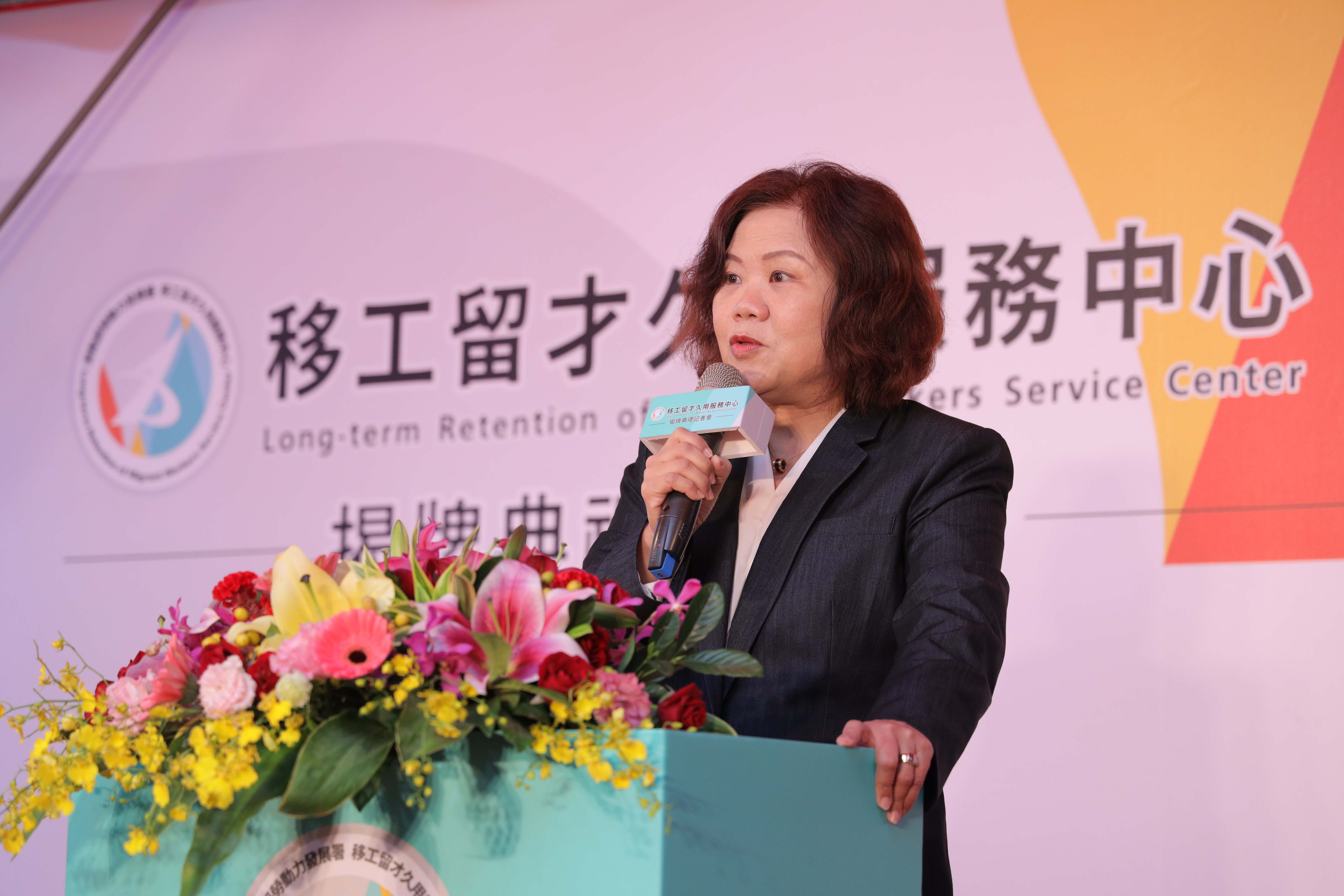 許部長表示,目前在臺移工人數已超過75萬人,從事本國人較不願意從事的辛苦工作,是我國不可或缺的勞動力,移工朋友長時間在我國工作,不僅熟悉我國的生活環境,且有著純熟的技術,就像是我們的家人朋友一樣,共同生活在這片土地,實已成為我國優秀穩定的勞動力,但是因為移工過去受限於法令規定,先前只要在臺累計工作期限屆滿,就必須出國且不可以再來臺工作,導致具有一定技術程度的人才流失。因此,勞動部為解決我國中階技術人力缺工的問題,自去年4月30日起推動「移工留才久用方案」,開放符合轉任中階技術人力資格的資深優秀移工可以繼續留臺工作,且沒有在臺工作年限限制;方案推動至今年11月底止,勞動部已經核准中階技術人力共計2萬1,351人,其中產業類計8,447人、社福類計1萬2,894人。另外,為進一步提供便民服務,提升申辦中階技術人力成效,勞動部在新竹縣成立「移工留才久用服務中心」,提供雇主申辦中階技術人力的各階段相關服務,並透過加強宣導推廣,使外界瞭解聘僱中階技術人力的優點及好處,同時更可以協助雇主解決申辦中階技術人力的各種疑難雜症問題,用心讓民眾感受到「又快」、「又好」、「又方便」的優質服務。
